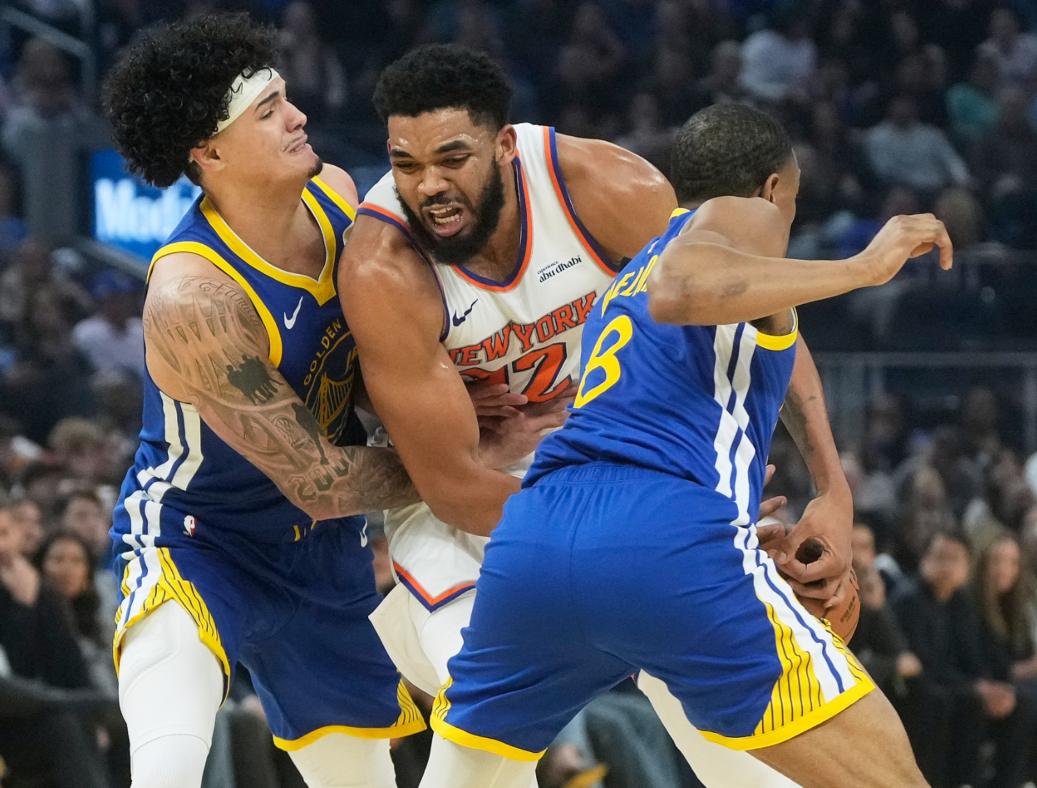 这场比赛尼克斯的核心布伦森继续缺席,开场尼克斯依靠内线的优势一度领先17分之多,但勇士这边并没有慌乱,巴特勒9分,穆迪9分,第二阵容的梅尔顿、桑托斯、霍福德登场后更是打出夯实的防守,勇士首节打完缩小到只差5分,库里首节只有5分3助攻。