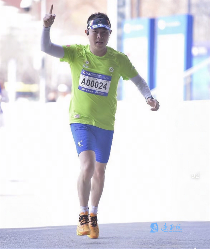 姜欢的跑步之路始于2022年,初衷是减肥。身高170厘米的他,那时体重已有80多公斤,体型偏胖不仅影响健康,也让他缺乏自信。为了做出改变,他毅然踏上跑道。2023年,在朋友的带动下,他报名参加迁马半程马拉松项目,以1小时47分50秒顺利完赛,成为大家口中“首马破2”的励志跑者。