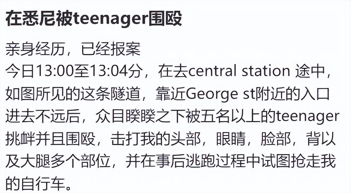 后来这件事情爆发之后,中国驻悉尼总领馆第一时间为受害者讨回公道,要求当地警方严惩凶手。