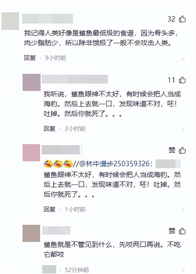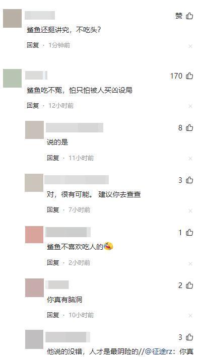 也有人对鲨鱼吃人事件引发了争议,为何不吃人类的头部,甚至还有网友称,鲨鱼吃不冤,怕只怕被人买凶设局。